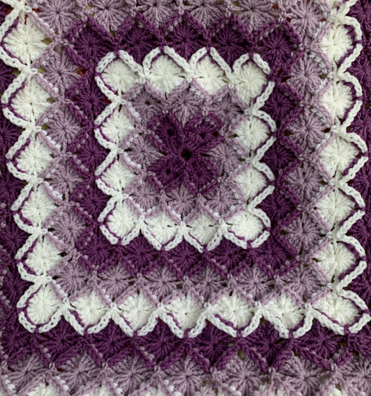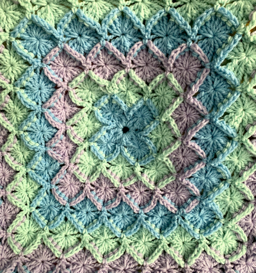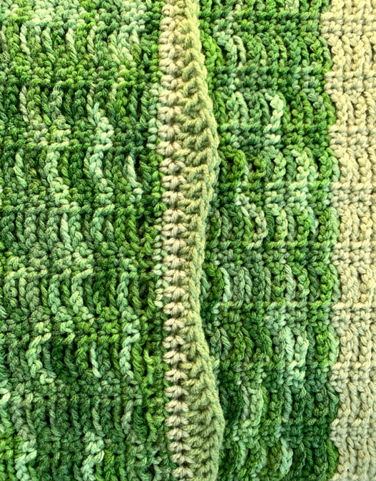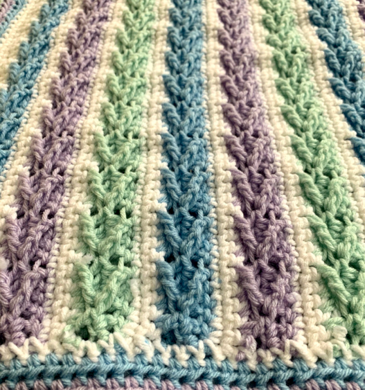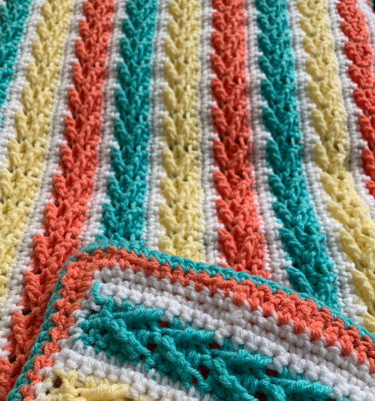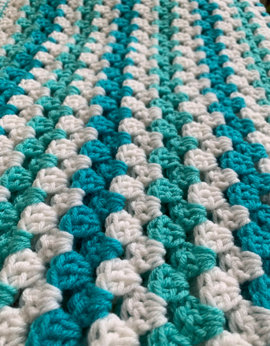 Easy pattern to make in any color combination. You can make the blanket any size using multiples of 3, so I started with a chain of 123.