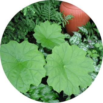 I use the handsome large-leafed Rodgersia aesculifolia in my garden