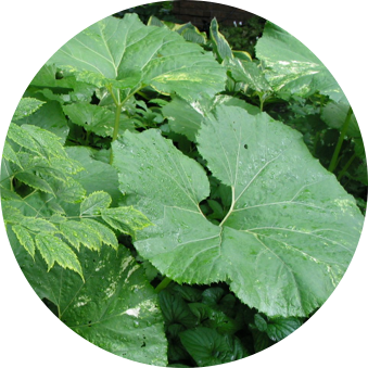 rope-like rhizomes, pushing its way through plant roots just to get closer to a sprinkler head. It is by no means low maintenance if planted amongst other more polite perennials. Once or twice a season, I thin out petacites to give its neighbors –  ferns, hostas, baneberry and dicentra  – a fighting chance. Hardy in zones 5 to 9, it can reach three to four feet tall in wet summers. You probably won’t need to propagate more of this plant, but just in case, two-inch rhizome sections will sprout into new plants. The stalks and flower buds are edible.