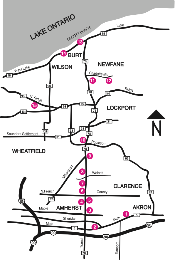 As you are traveling north on Transit Road, stop in at Stedman's Old Farm Nurseries, one of two locations on our route today. Explore their plentiful selection of trees, shrubs and perennials. In addition, Stedman's offers design services and landscape installation.