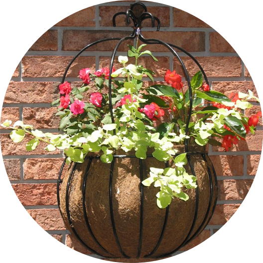 An impressive array of perennials are displayed including several varieties of clematis, iris, peonies, and many shade loving plants. Zehr's sells Kinsman Company's european classic planters including cradles, cauldrons, hayracks and hanging baskets (see photo below). And for those who need instant gratification during our short growing season, use Zehr's 6" pots of annuals to fill out your hanging baskets. This greenhouse continues strong throughout the summer and fall with seasonal annuals and perennials featured.